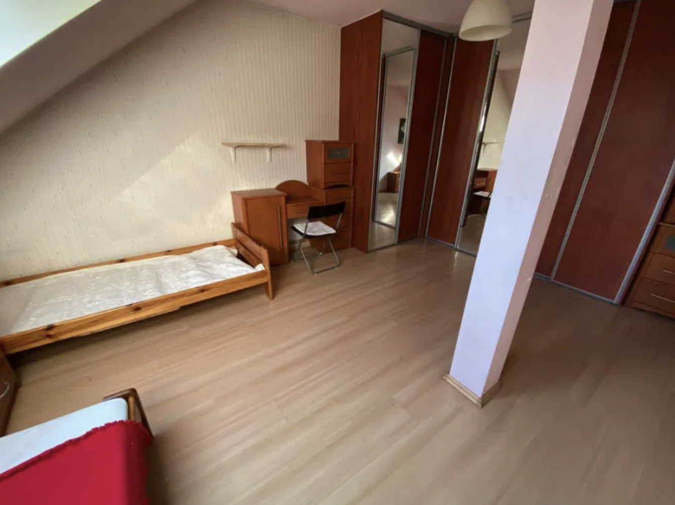 Pokoje w pełni umeblowane – łózko, szafa, regał, komoda, szafka, biurko, krzesło, wszystko co potrzebne aby wygodnie mieszkać.